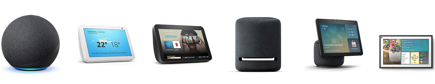 Echo é a linha de produtos com Alexa embutida, desde dispositivos sem tela, como a Echo Dot até dispositivos com display de 15 polegadas, como a Echo Show 15. A linha Echo é fundamental para quem quer ter uma Smart Home centralizada na Alexa.